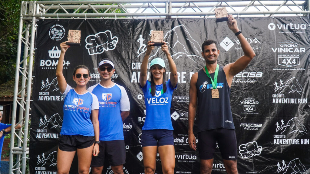 Os vencedores da 1° etapa foram a Marcela Oliveira e Silas Ferreira nos 4km, e Jullyana Ribeiro e Fabiano Figueiredo nos 8km. Esses aventureiros largam na frente na disputa pelo título de reis e rainhas da montanha do circuito adventure run de 2023.